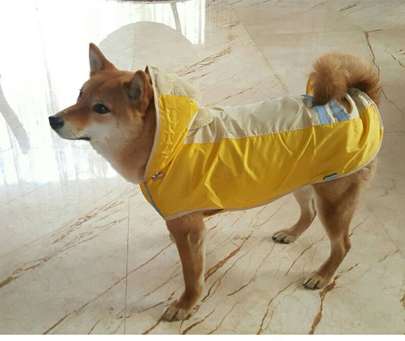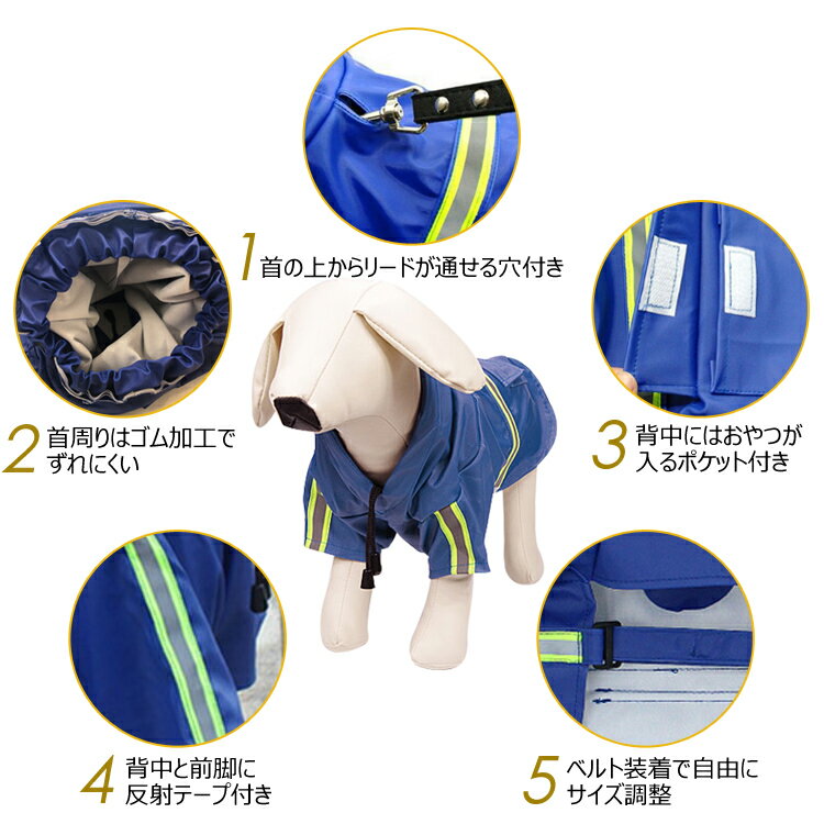 【誰でも割引クーポン配布中】 【小型・中型・大型犬】レインコート/撥水/レインコート/カッパ/リード穴つき フードつき 蛍光テープ 散歩 夜道