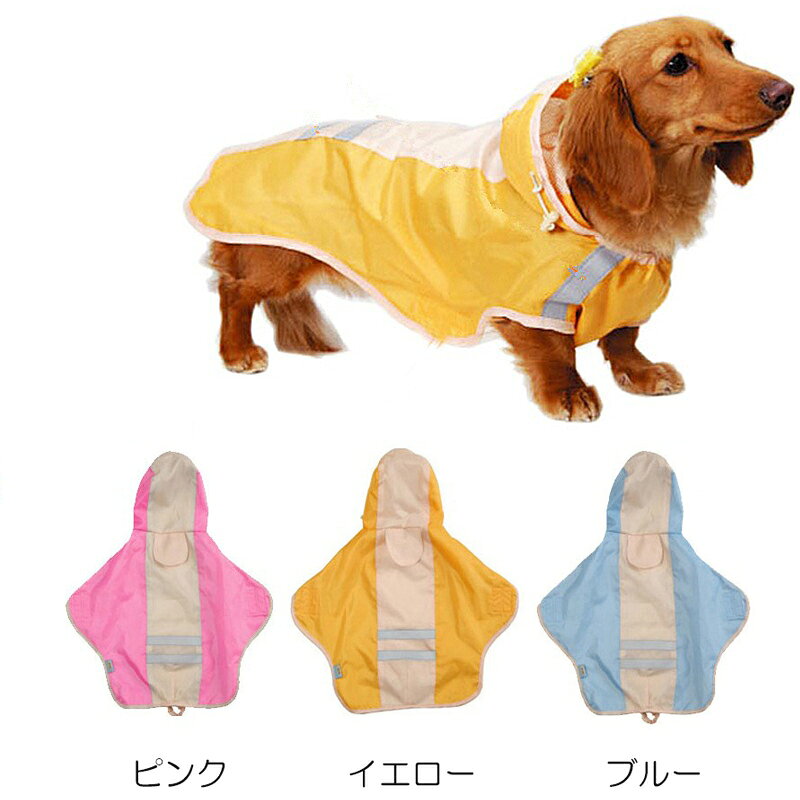 イエロー ペット服 帽子付きカッパ 携帯用の超軽量合羽 犬服 犬用レインポンチョ 小型犬 中型犬 丸ごと包みペット服